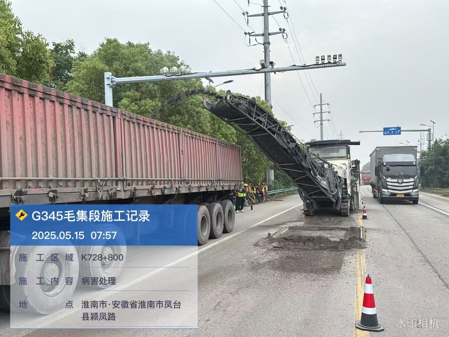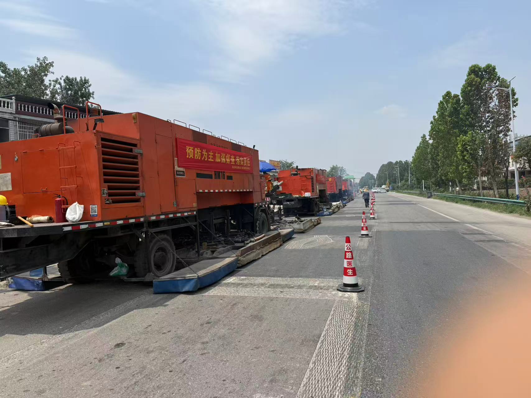 项目自513日开工以来,已完成:K720+524-K735+379段,老路面病害挖补1600㎡;路面横纵缝病害处理2050㎡;4cm就地热再生22875㎡;K735+179-K735+379段左幅已完成20cm水泥混凝土破除+20cm水稳下基层回+5cmAC-20沥青混凝土底层摊铺;K735+179-K735+379段右幅已完成20cm水泥混凝土破除: